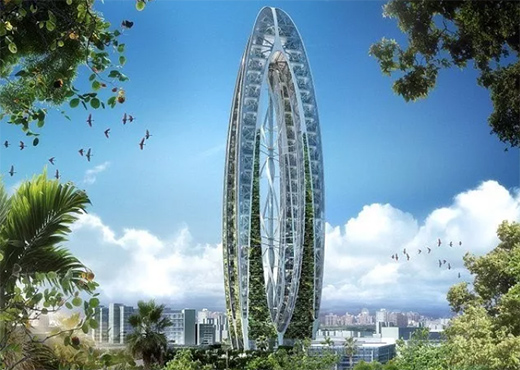 這個未來風格的塔式大廈包含著數千棵樹木,通過“吸收”有毒煙霧可以有效解決城市污染問題。它被命名為“仿生拱形摩天大樓”,旨在使用“生物墻”來吸收有害煙霧氣體,它能夠吸收這些有害氣體,并轉化成為氧氣。