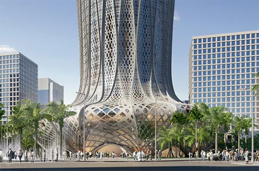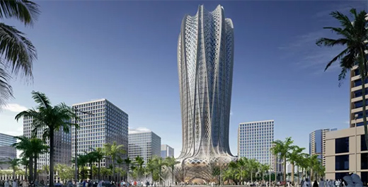扎哈·哈迪德建筑事務所執掌的卡塔爾Lusail酒店項目,設計靈感由沙漠風信子的結構啟發而來,它是一種波斯灣原生的開花植物,學名Cistanche tubulosa(管花肉蓯蓉)。
