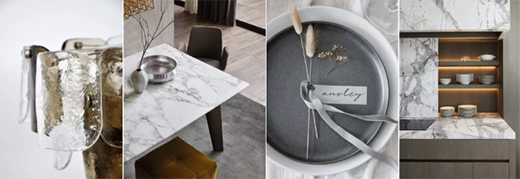 通過一扇拉門,進入餐廳。塞浦路斯灰大理石地面沉穩而時尚,一側的調酒吧臺彰顯了屋主的格調,圓形餐桌符合中國人飲食習慣,吊頂與吊燈更是在用餐其間為圓滿融洽的氛圍述刻了形狀。