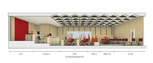 具高功能性的典型法庭布局,將有助于提供公眾、法官、法庭職員、律師、在押人員、媒體代表與法庭記錄員行動上的隔離。