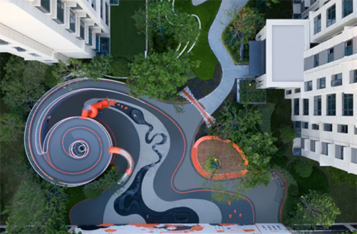 穿過密林,深處更是別有洞天。這片兒童樂園引入大自然界的水循環過程作為主題,孩子們可以在這里奔跑跳躍,盡情撒歡,寓教于樂,感受自然的奧秘。同時,老人也有相應的鍛煉和休息場所,一切都是那么怡然祥和,富有生活氣息。