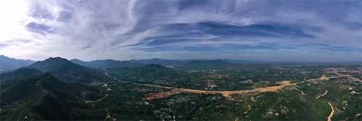 游客中心位于度假區(qū)南端,與主入口相連,場地內(nèi)視野開闊,山水環(huán)繞,遠眺便可一覽泰山雄渾壯闊的景致。于是,“與山水相連,與自然融合”的建筑場景成為設計最初的設想。
