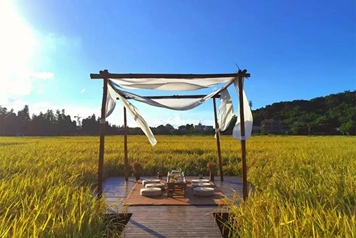 傍晚它還可以轉換為星空影院,繁星點點,蟲鳴聲聲,在光影流轉中感受夜晚的怦然心動。 劇場周圍密植著多種農作物,成為周圍自然景觀的延續。通過使用者和建筑的互動,增加全方位的體驗感受,建立起自然、建筑和人的有機聯系。