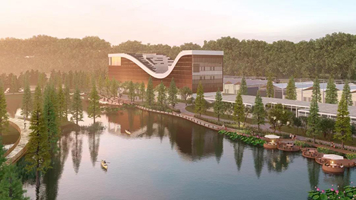 當問到為什么用“蓮”這個元素作為設計的出發點時,他們談到第一次在十里蓮江進行現場勘查的時候,就被周圍的水池和水面所吸引。 “從飛機上往下看的時候,我們就發現這個地方有大大小小的水面,這個場地四周被荷花、荷塘包圍著。這個地方又叫十里蓮江,感覺建筑與現場看到的蓮葉蓮花有一種內在的聯系。”