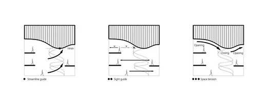 建筑的參觀動線為:入口——螺旋樓梯——屋頂——展廳——連廊——地面,這一路徑形成了連續閉環,訪客得以充分參觀體驗室內的空間效果。