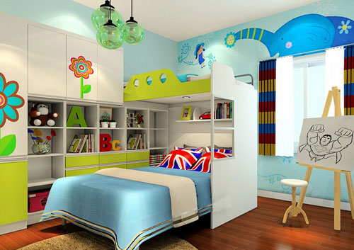 兒童房的配飾和配色要配合孩子活潑好動(dòng)的天性。啟迪性的色彩和趣味化的設(shè)計(jì),最符合兒童的心理,孩子們希望房間的各個(gè)部分都是游樂(lè)場(chǎng),連平時(shí)吃飯喝水用的碗筷水杯都要有趣可愛(ài)的。而顏色鮮艷的家具,容易激發(fā)孩子的想象力和動(dòng)手能力,有利于促使孩子從小養(yǎng)成凡事規(guī)劃的能力。
