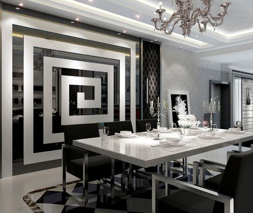又或者以一個餐廳裝修為例,無論是綠色系的網格墻飾,浮于餐桌上方的魚型燈飾,后現代主義對待裝飾不是傳統的具象圖片和實物展示,而更多的采用通過對事物解構而得到的暗示和隱喻。