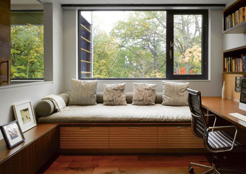 書房里的飄窗可以這樣設計,不出去在家里的周末怎么度過?來這里就是很好打發時間的地方,伸伸手取閱一本書,累了就在窗臺邊上的沙發上小睡一會,瞇縫著眼睛,伴著窗外的美妙風景,一不小心做了一個神奇而美麗的夢。