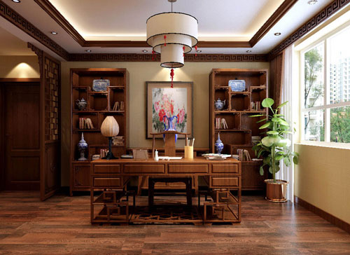 一個(gè)茶香墨韻的書房在表現(xiàn)了其自身的功能與形式外,