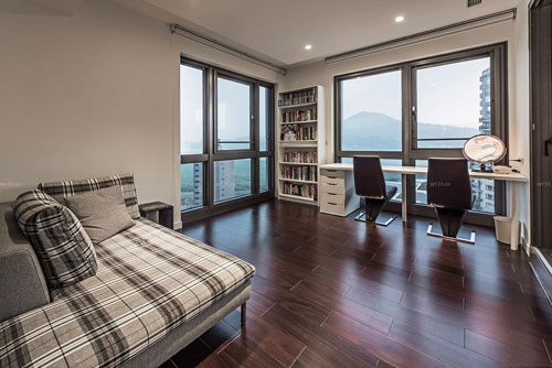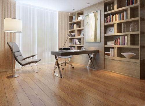 現代時尚的書房視覺自然、干凈易打理、超強耐磨的強化地板才是最合適的選擇。