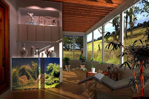 如果因家庭住房較為緊張而需要把陽臺進行全封閉而安排成孩子臥室或書房的話,也要下一番功夫巧妙構思,使之既實用又美觀。即使是把陽臺作為家庭的儲藏空間,也要根據實際情況和陽臺條件去設計裝修及陳設方式,切忌“室內室外兩重天”,因與室內裝飾不般配而顯得不倫不類。目前建造的住宅,陽臺上一般是沒有照明設施的,一到夜晚,陽臺便掩入黑暗之中,故應在陽臺上裝置一盞陽臺燈。如果陽臺門與陽臺窗之間有間墻,可以裝置一盞壁燈,安裝高度宜距地面1.8一2m,燈具材料最好選用不怕日曬雨淋的玻璃燈具;如果門與窗之間無間墻,可以在上一層陽臺板底裝一支浮白罩的吸頂燈。由于陽臺燈只供休息時照明,故不必太亮,燈的開關則應裝置在室內。