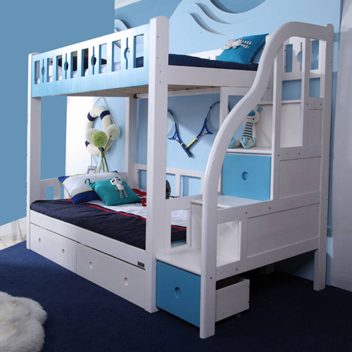 這是一款空間自由縮放的典型設計,追求空間上的解放,同時要求功能上的多重應用,是設計、生產、五金、工藝的綜合展現。設計師首先通過導軌與滑輪實現空間上的水平移動,其次通過空間排序設計實現空間上的上下折疊,把功能應用這部分使用最小空間進行存放,留出更多的自由空間。這款設計是配備上下床和寫字桌三項功能,休息、學習、娛樂隨時切換。