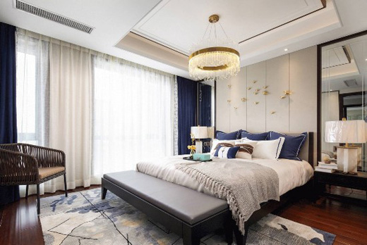 床背后的銅質壁飾,既精致又散漫,營造出一個休閑舒適的美學空間。