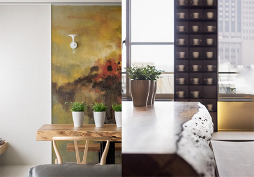 一杯茶,一幅畫,一群朋友,談天說地,度過美好的愉快時光。這就是居住者的理想生活場景,為此設(shè)計師從生活本真出發(fā),拋棄繁復(fù)累贅的裝飾,轉(zhuǎn)向極簡的設(shè)計。在空間中采用簡單的線條,加上溫潤的色調(diào),搭配原木天然的紋理。再點綴一些不同種類的綠色植栽,及富有禪義的茶杯陳列架…這一切只為了造就一個悠閑的居住空間,讓居住不再只是外在的裝飾,它更可以是一個乘載心靈的場所。