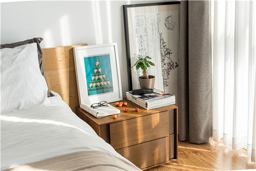 臥室床頭柜要根據床的大小來決定,1500mm的床則放500mm左右的床頭柜,1800mm的床則需要放600mm寬以上,高度略低于床面是最合適的。