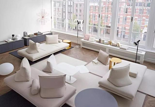 傳統的沙發+茶幾+電視的布局方式已經逐漸被淘汰了;一個好的設計,它的根本永遠不能忘了要“以人為本”,我們應該把客廳最大化的利用起來而不是一味的去堆砌使用率極低的物品;