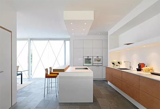 普通的廚房吊頂我們都要注意很多的事情,那開放式廚房也不例外,大家在安裝的時候要注意它的材料是防腐防潮以及易清理性的,小編建議你也可以使用鋁扣板,如果想要美觀的話,也可以用防水涂料,但其使用時間沒有鋁扣板長。