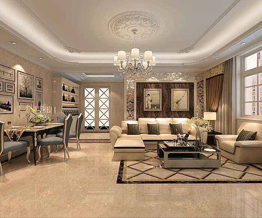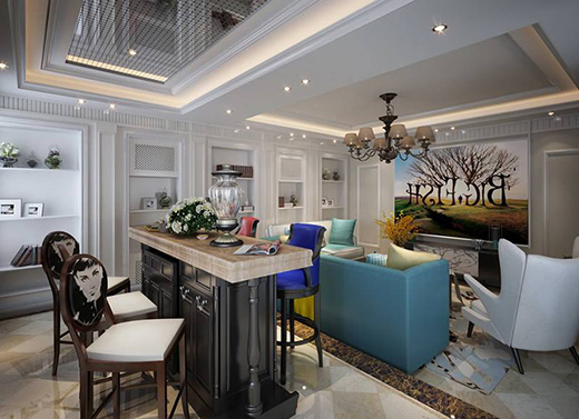 歐式簡約風格裝修中要表現出能夠完整地體現出居住人追求品質、典雅生活,歐式簡約風格在設計中少不了時尚元素,如在家具的造型設計上、吊頂、裝飾都可以體現時尚元素。