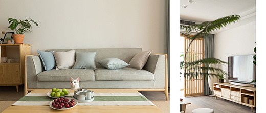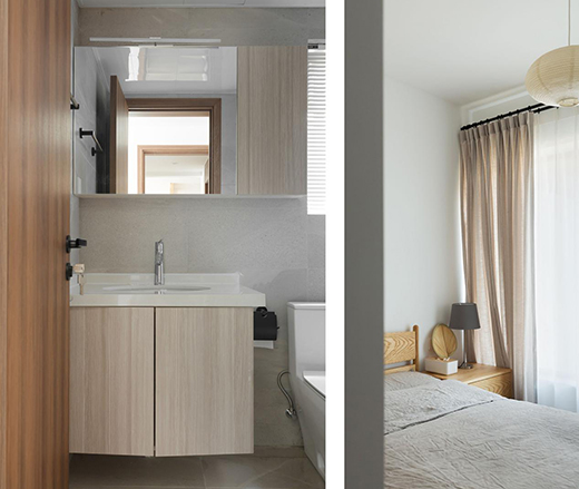 設計師覺得軟裝并不是一蹴而就,靠一些裝飾堆積出來的,軟裝的過程其實是生活的過程。適當的留白可以讓家適應生活的不斷變化,將來墻上或許會掛上L先生的字畫,或許會貼上旅行的紀念,或許將來還會有小孩的畫作~它們都能在這個家里找到合適的位置。后續就讓這個家在流逝的歲月中“自然生長”吧。