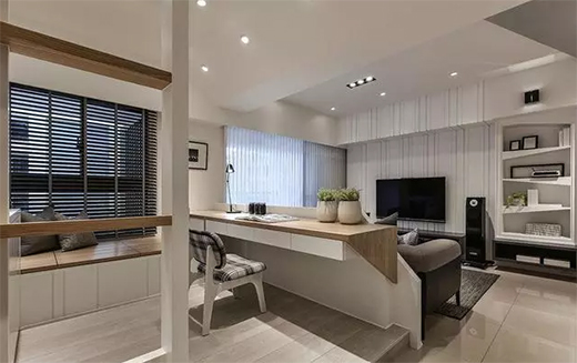 由于客廳空間比較寬敞,所以就將書房也設在這里