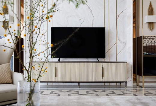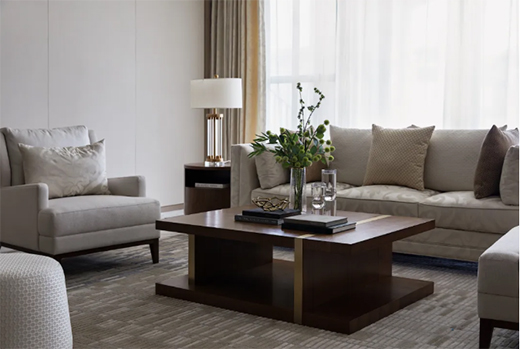 米色的溫柔與金屬的質感打造出素雅精致的客廳意境。