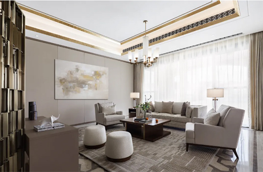 設計師鄭鴻以居者家族的凝聚力為起點,結合地域文化抒寫歸家的情懷。在輕奢美學與自然風物的融合滲透中,傳遞著充滿雅趣而恒久的審美,讓空間充滿安適舒愜的韻致。