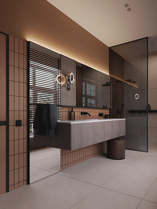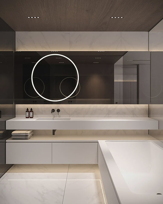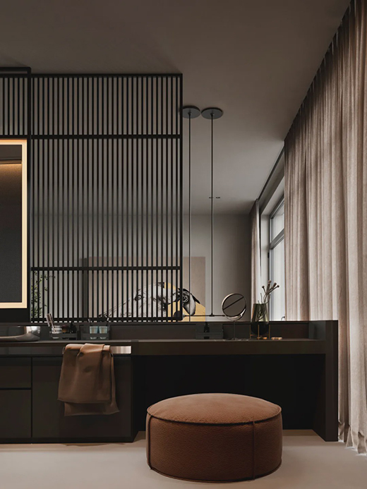 衛生間和臥室仍然延續燈帶設計的手法,簡單的設計與搭配就能襯托出空間的氣氛,低調而自然。