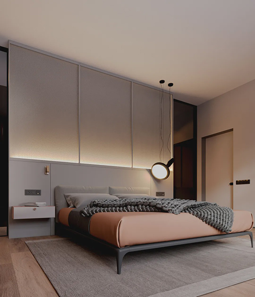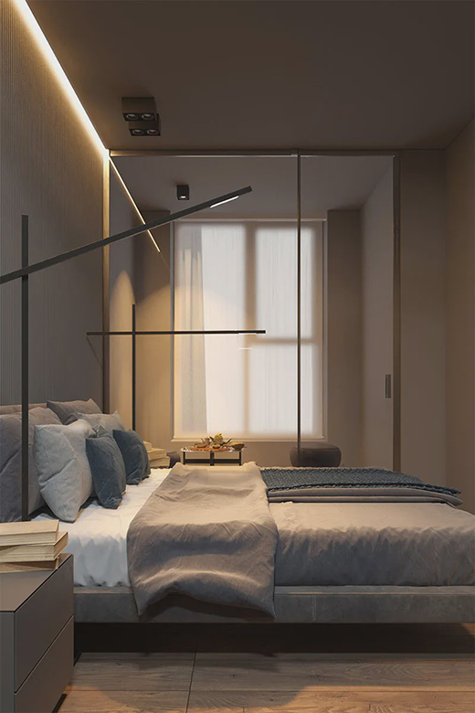 臥室的燈光設計是整個空間最大的亮點之一,是這個空間氛圍營造的靈魂。