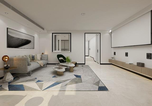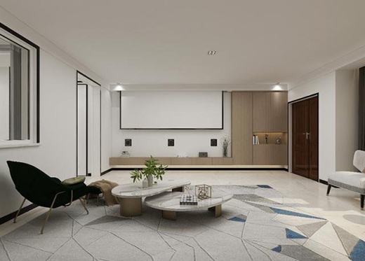 由于別墅的地下層光線暗,隔聲好,私密性強(qiáng),因此設(shè)計(jì)師將負(fù)一層客廳打造成了影音室。