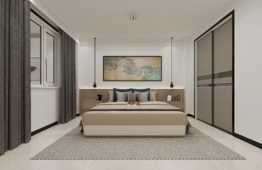 老人喜歡寧?kù)o愜意的氛圍,所以在用色上比較淡雅,以白為主,素雅安適。一幅靜謐的江南水墨畫(huà),更顯沉穩(wěn)清透。衣柜選擇移門(mén)的形式,節(jié)省空間,又帶有一絲禪意。