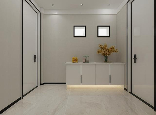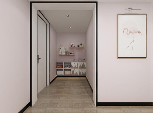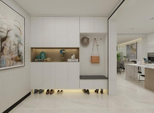 入門(mén)左手邊設(shè)計(jì)一排長(zhǎng)長(zhǎng)的高柜,設(shè)置更多的收納空間,滿足業(yè)主鞋子包包等儲(chǔ)物需求。