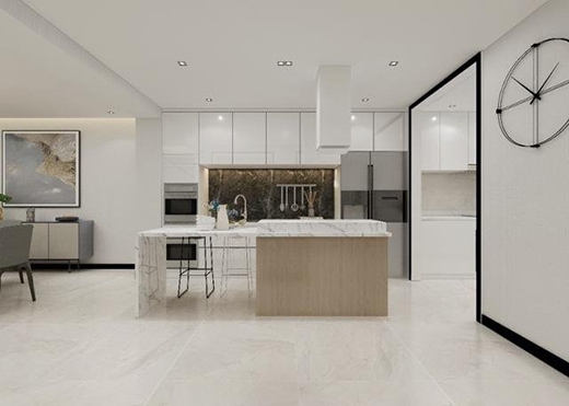 西廚中島臺(tái)質(zhì)感清新的原木和優(yōu)雅奢華的大理石肌理,豐富了平面和立面上的細(xì)節(jié)層次,無(wú)論何時(shí)下廚都給人舒服的溫度。