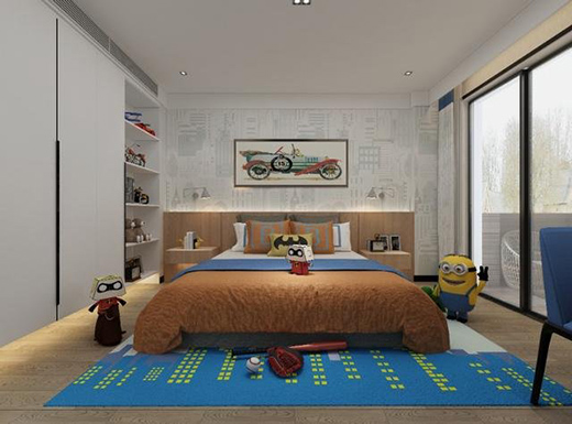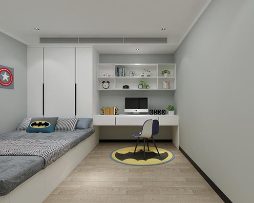 粉嫩的兒童房無(wú)論是色彩還是家居處處都透露出少女心,而兩側(cè)床頭柜除了配合設(shè)計(jì)感,也從實(shí)用出發(fā)方便業(yè)主女兒的學(xué)習(xí)及生活。
