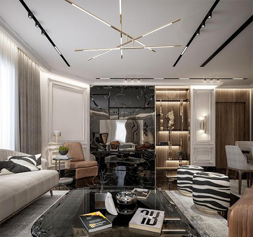 黑金配色 · 法式輕奢風(fēng)復(fù)式室內(nèi)裝修設(shè)計(jì)