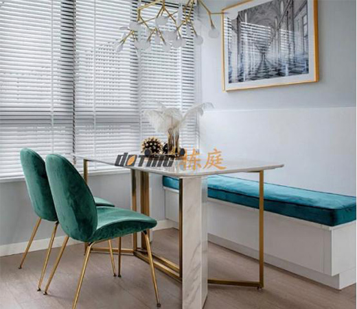 把餐廳和客廳結(jié)合起來,不要做隔斷,不再刻意分割成兩個區(qū)域,使整個空間顯得更加明亮和寬敞。可以用長卡座代替沙發(fā),茶幾也可以直接用餐桌代替,周圍放幾把餐椅,人多也不怕。整體布局可以離窗戶更近,光線充足,景色好,還能讓人增加食欲,更悠閑地享受美食的樂趣。或者直接將廚房餐廳進行空間融合,將餐桌擺在廚房中,就餐上菜,快速簡便,能充分利用空間,較為實用。