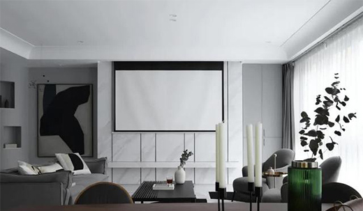 ▲ 客餐廳相連,餐廳正對客廳投影的完美角度,也能讓屋主一家享受用餐觀影的體驗