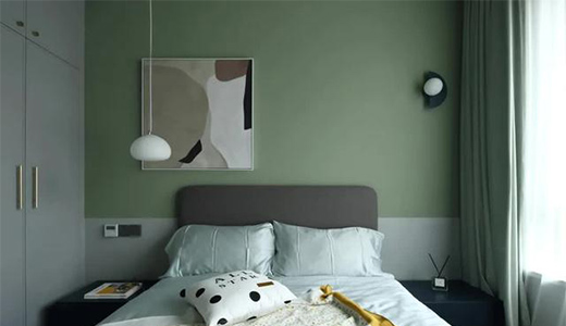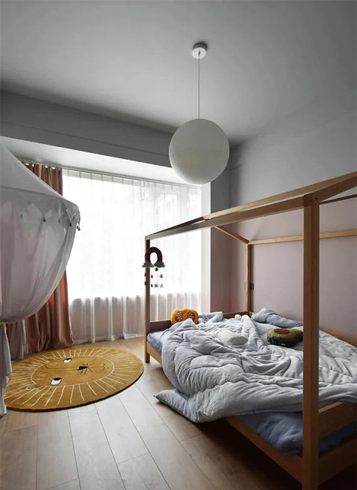 ▲ 男孩房,墻面采用淺綠色加灰白色的形式貫穿整個空間,清新又溫暖