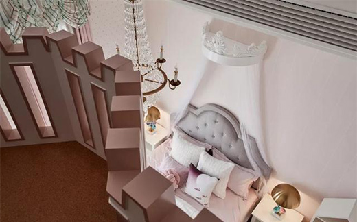 女孩房則是優雅的馬卡龍色彩,深深淺淺中,公主范十足,似乎在宣誓著主權。