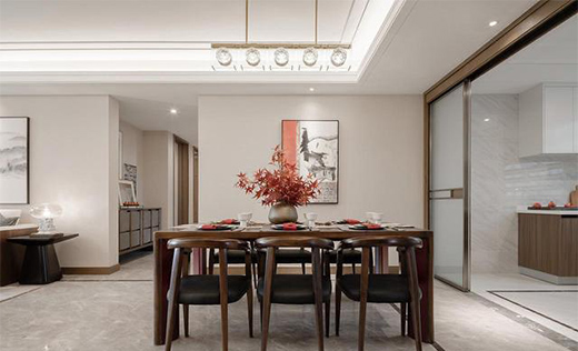 餐桌的造型應和著時尚的氛圍,配飾的選擇又表現著張揚,現代中式的格調彰顯無疑。