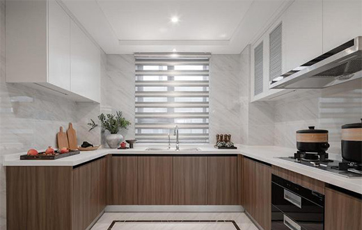 人類進步都會率先體現在吃喝方面,小小的廚房,卻要承載著最多最復雜的機器,u形廚房的選擇,讓空間利用率大大提升,落落大方。