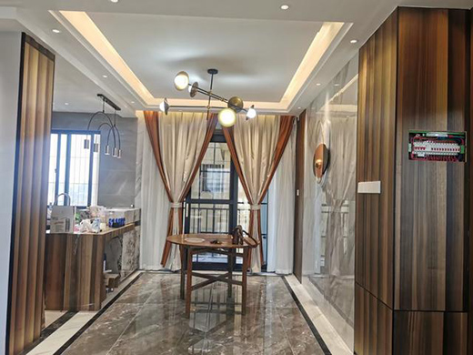 而客廳最大的特點是寬敞通亮,隱形防盜網的里邊是一個全開的落地窗,將客廳外延,增加了整個空間的寬度,顯得更加寬敞。而無論是入戶、餐廳還是客廳,特別木質板材的選擇,選擇最新的樣式和效果,看起來更有質感。