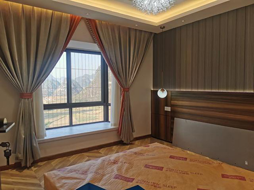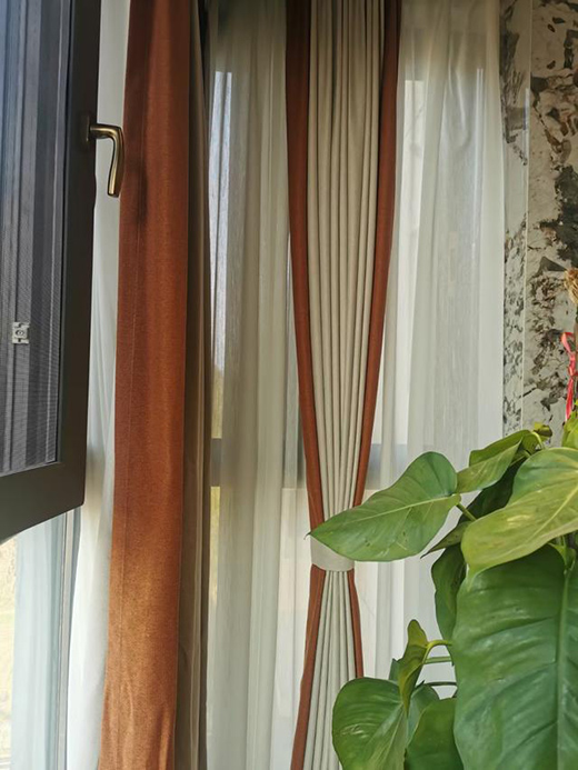 房間的窗簾設計與紗簾,這樣相比單簾而言更實用。