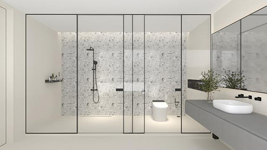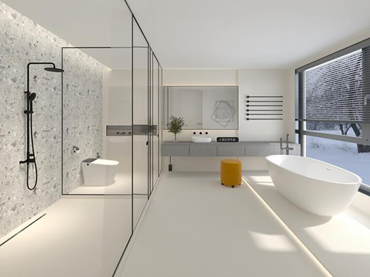 而衛生間的設計要求必須有浴缸,因為她有泡澡的習慣。綜合以上需求,GABO設計師賦予了衛浴美學空間的色調--【極簡白】