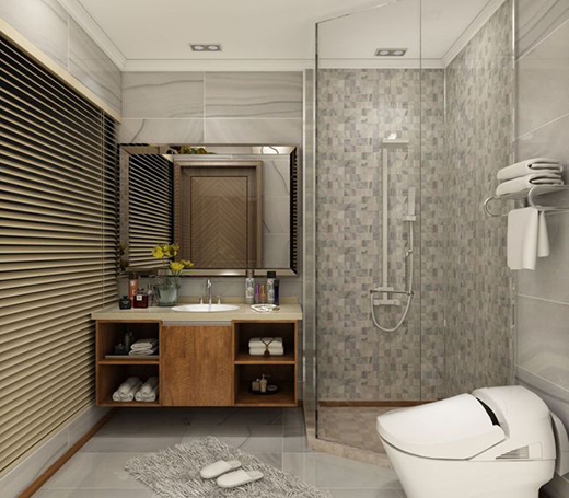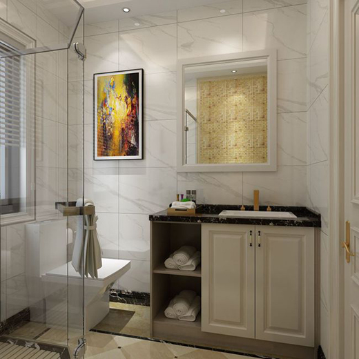 浴室裝修時應挑選白色或比較亮的瓷磚,從視覺效果上最先改進暗衛的缺點。浴室總面積一般較為小,并且日常生活零碎的物品許多,物件沉積得過多,會在視覺效果上產生一種小而灰暗的感覺,因此 在浴室裝修中,追求簡單,除去多余的物品,空曠會使光線增多,更光亮。