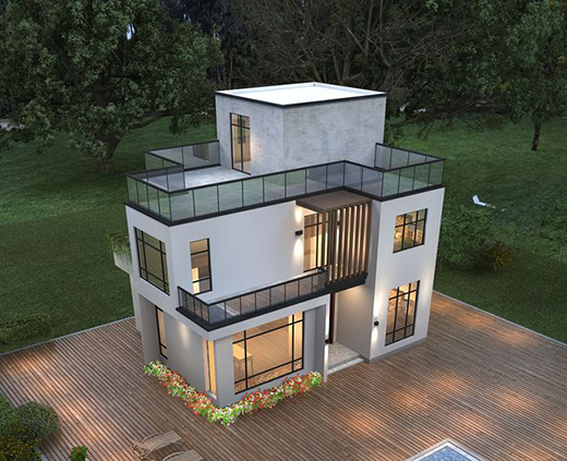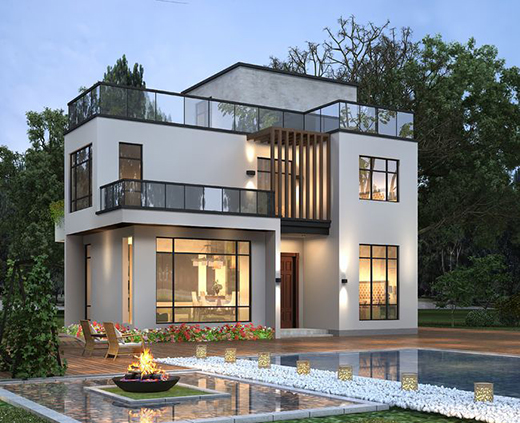建筑風格時尚耐看,室內布局合理即可,不像中式合院那么講究方位布局;建材普遍,不像歐式羅馬柱需要定制運送過來,現代風建材鄉鎮建材廠就能買齊,還便宜;后續家具、裝修設計也好選擇。