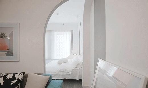 ▲ 從客廳望向臥室,其拱形門的元素連貫而重疊,層次豐富