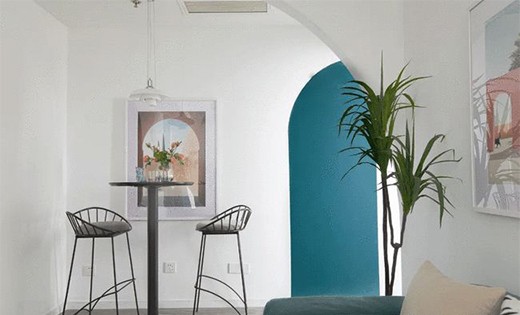 ▲ 經過廚房來到客餐廳,在視覺和搭配上偏向舒適簡約,與臥室之間設計兩個半圓拱形門洞,形成回字型動線,并為空間增添幾分靈動感和趣味性