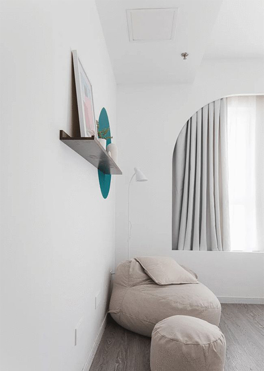 ▲ 原本比較方正拘謹的空間,通過硬裝的弧線設計和軟裝的柔和搭配,變得更加舒適