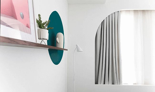 ▲ 利用立面增設隔板,與圓形色塊穿插,作為書籍和擺件的展示區