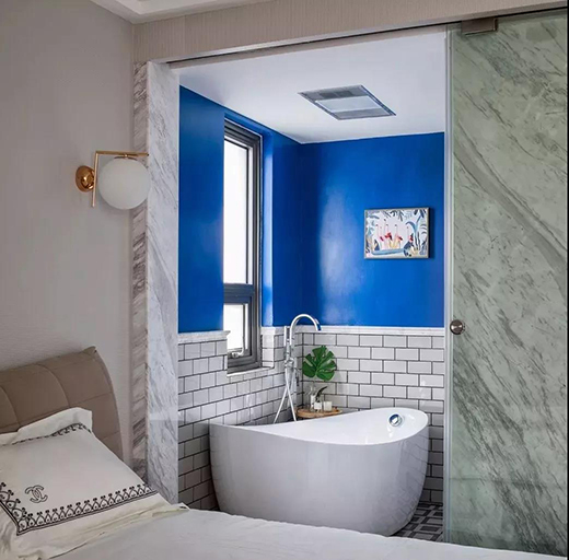 藍色優(yōu)雅浪漫,并且彰顯干凈素雅,使用在衛(wèi)生間中,使原本單調(diào)的空間整潔清新并且不乏趣味。